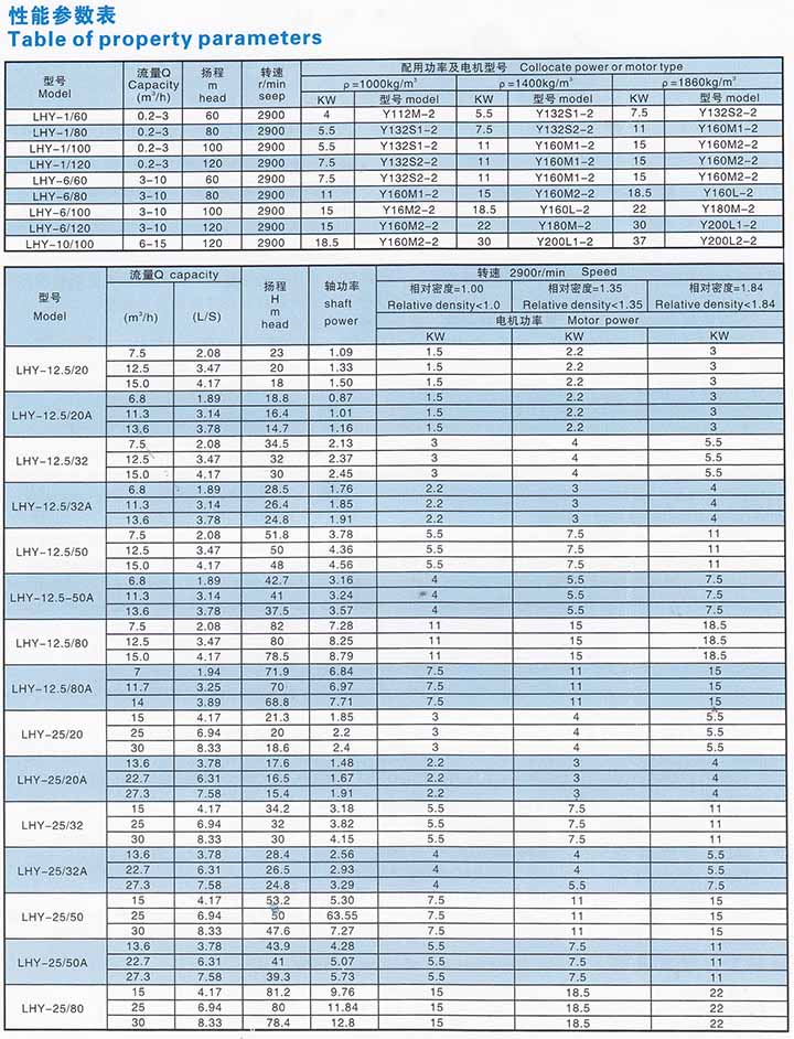 概述: 硫磺制酸是我國硫酸工業(yè)的重要發(fā)展方向之一,小流量、高揚程的液硫泵是硫磺制酸的關(guān)鍵裝備。為了適應(yīng)這一形勢發(fā)展的需要,在有關(guān)設(shè)計院所、大專院校專家與本公司在吸取國外優(yōu)秀水力泵型的基礎(chǔ)上成功開發(fā)LHY系列立式液硫泵。 LHY系列立式液硫泵適用于各種規(guī)模的硫磺制酸工藝流程中輸送130~158℃的液體硫磺。也適用于其他需要小流量、高揚程的化工流程。LHY系列立式液硫泵由于揚程特高、流量特小、比轉(zhuǎn)速數(shù)特低,已不可能用離心泵的型式來達到性能要求,用旋渦泵則在運轉(zhuǎn)過程中性能不穩(wěn)定,故采用全新的技術(shù)進行水力設(shè)計,具有普通離心泵,旋渦泵所不具備的特殊優(yōu)點。該系列泵流量在很大范圍內(nèi)變化時,泵的揚程始終保持不變。這一特點特別適合于要求泵具有自調(diào)特性的化工流程。 LHY系列立式液硫泵結(jié)構(gòu)簡單、維修方便、運行平穩(wěn)、性能穩(wěn)定。 本系列泵在輸送液體硫磺時,采用1C r1 8Ni9Tl材料制造,當(dāng)使用于其它化工流程時,可用下述材料制造: 304(0Cr18Ni9)316(0Cr18N112Mo2)1Cr18Ni12Mo2Ti316(00Cr18Ni12Mo2)CW-2(CD4MCu)J-1(UB-6)20Cb3。 性能范圍:流量:0.2~10m3/h 揚程:40~120m 轉(zhuǎn)速:2900r/min 適用溫度范圍:t≤20℃。如采用特殊的制造技術(shù),適用溫度可提高到550℃。 泵的型號意義說明 HYL-系列代號 1-泵的流量(m3/h) 80-泵的揚程(m)