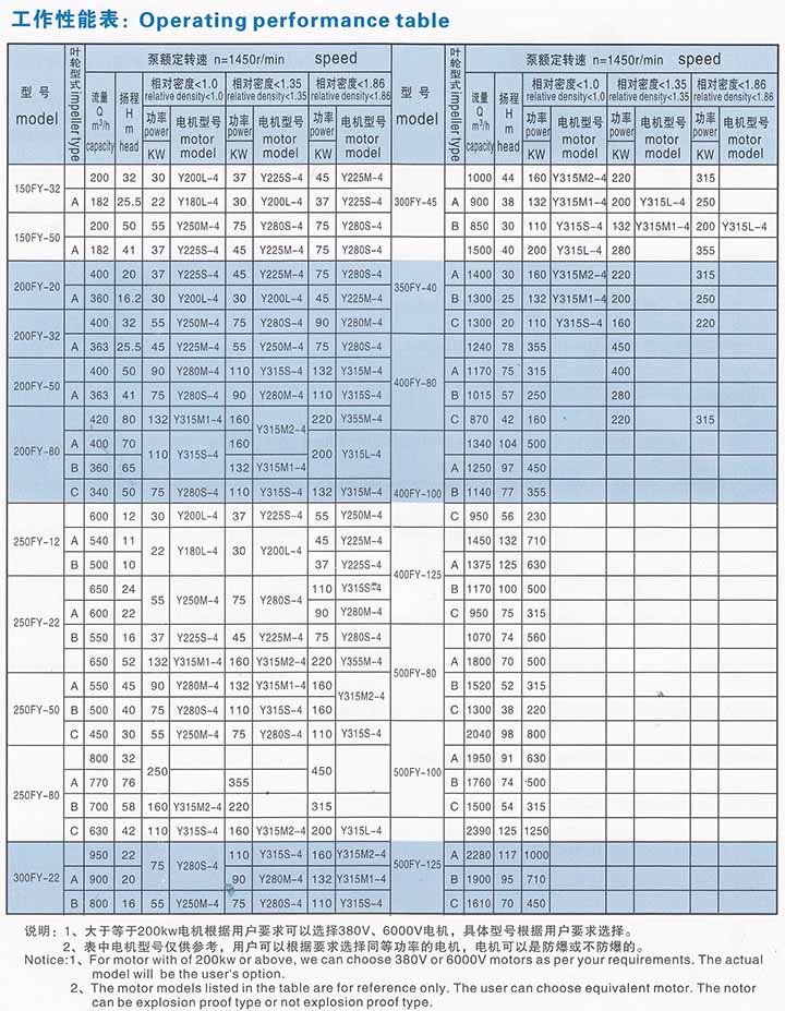 根據(jù)所輸送介質(zhì)的不同,F(xiàn)Y型立式液下泵接觸液體部分的材質(zhì)可選用鑄鐵(用符號H表示)、鑄鋼、1Cr18Ni9Ti(用符號B表示)、1Cr18Ni12M02Ti(用符號M表示)、304、304L、316、316L、904、Lewmet合金、20號合金等材料制造。
