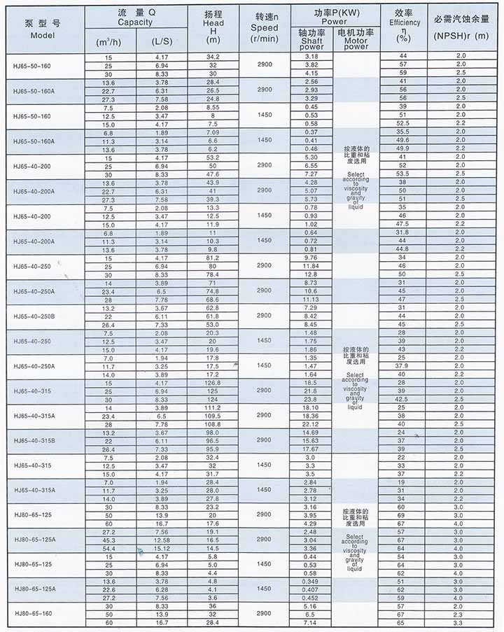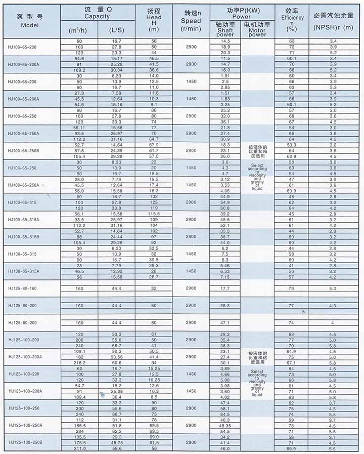 概述: HJ型單級單吸懸臂式化工離心泵是在IH系列泵的基礎(chǔ)上,參照國外技術(shù)并結(jié)合用戶實(shí)際使用后而優(yōu)化設(shè)計(jì)的新產(chǎn)品,其額定性能和安裝尺寸符合ISO2858標(biāo)準(zhǔn),制造技術(shù)條件符合ISO5199標(biāo)準(zhǔn),主要適用于化工流程中含固量小于50%之內(nèi)的漿液以及含結(jié)晶雜質(zhì)介質(zhì)的輸送。 與IH泵相比,HJ化工泵結(jié)構(gòu)具有以下特點(diǎn): 1.縮短了葉輪的懸臂,加粗了軸的直徑; 2.非對稱截面的蝸殼、泵殼無口環(huán); 3.采用三只進(jìn)口軸承; 4.裝有與國外先進(jìn)的雙端面機(jī)械密封或填料密封相似的新型密封。 由于以上結(jié)構(gòu)使該泵有以下優(yōu)越性: 1.可以輸送高粘度或含固體的介質(zhì),這時泵的效率較IH泵高; 2.非對稱截面蝸殼減少了流體的沖擊損失,縮短了泵殼尺寸; 3.增加軸的強(qiáng)度,減少了轉(zhuǎn)子的撓度,因而運(yùn)行穩(wěn)定、密封壽命長; 4.葉輪螺母與葉輪做成-體,改善了泵的入口條件,提高泵的抗汽蝕性能; 5.先進(jìn)的軸封形式,使密封效果更佳,減少了泵的泄漏; 6.可以不拆卸泵殼和葉輪的情況下調(diào)節(jié)泵的間隙,減少了維修時間,節(jié)省維修成本。